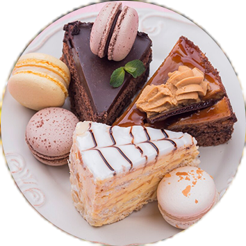 Cakes (Vanilla, Chocolate, Apple) Donuts (Vanilla) Custard (Vanilla, Chocolate) Mousse (Vanilla) Brownies Cheesecake